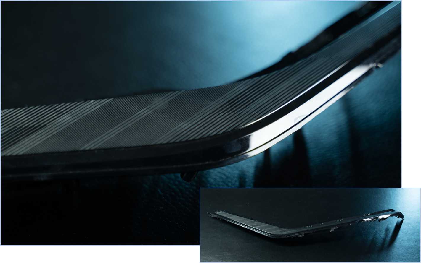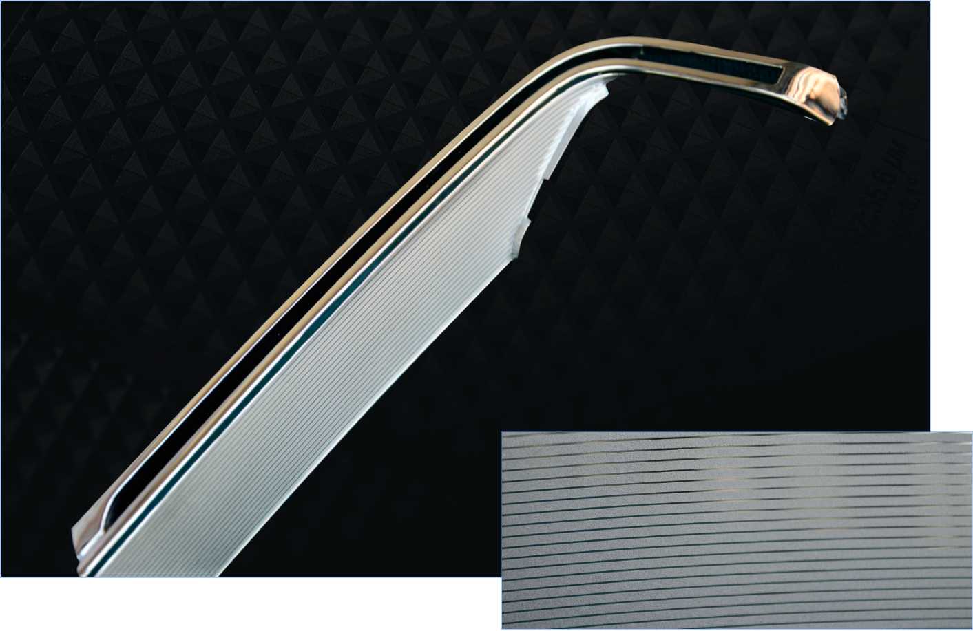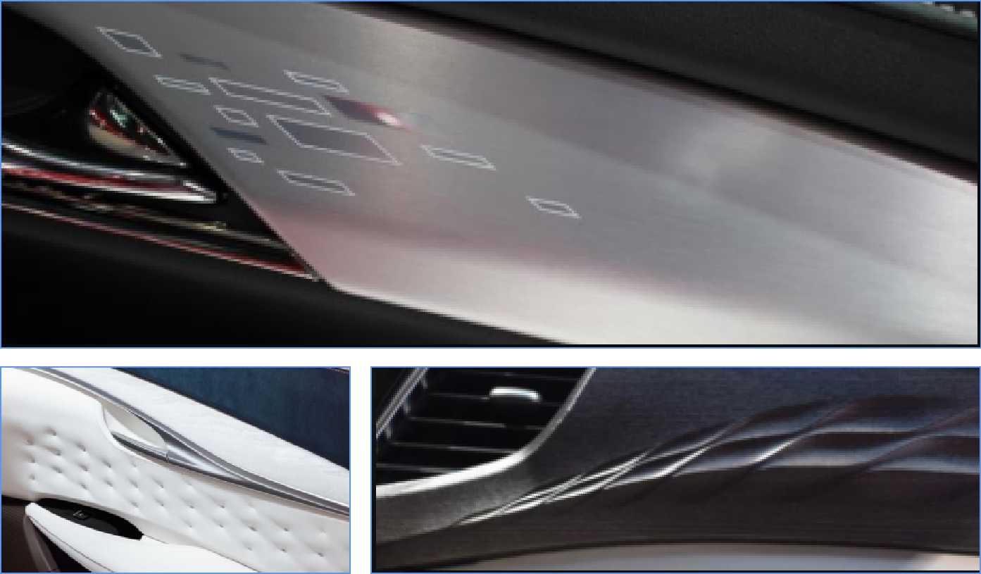 图1.不规则造型,镜面线条按照设计角度和颗粒完美结合;图2.渐变式镜面线条和颗粒花纹结合;